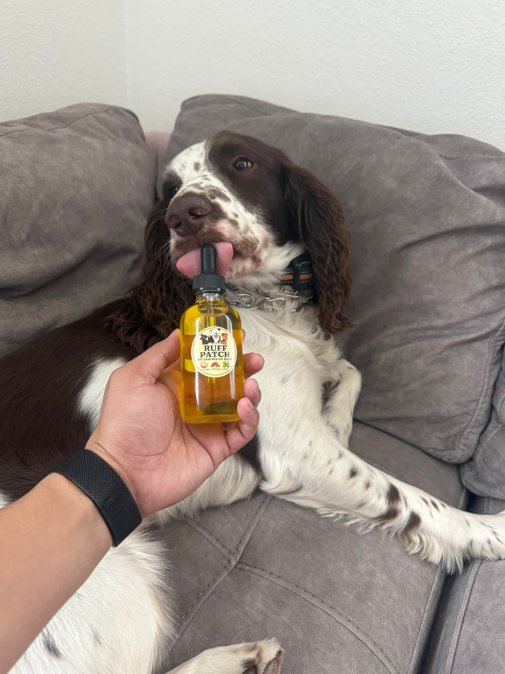 ⭐️⭐️⭐️⭐️⭐️ Rip is a hunting companion that is constantly exposed to the different outdoor weather changes. Between the hot dry summer and the cold wet winter, he was having itchiness and skin irritation. After just 9 days of applying the oil we noticed and change in his patches of missing fur, and itching is nearly gone all together!